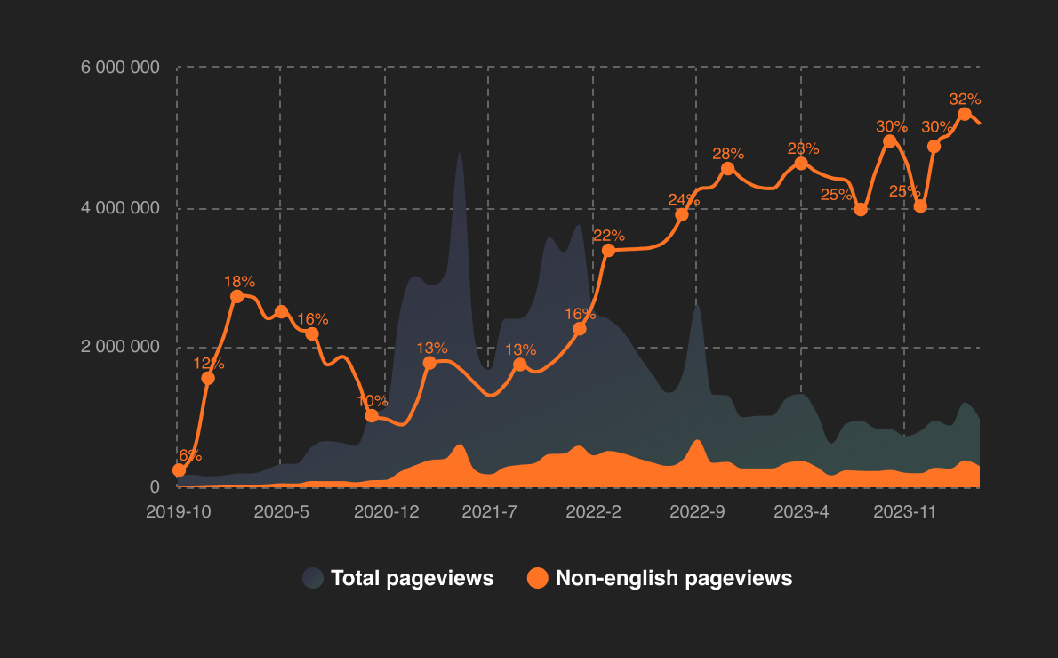 The Ethereum community aims to be global and inclusive, yet much of its content only caters to English speakers, leaving out the world's 6 billion non-English speakers. For ethereum.org to act as the portal into Ethereum for the worldwide community, we believe providing non-English speakers with Ethereum content in their native languages is essential.