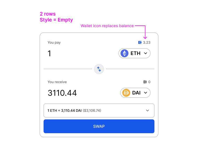 This is the box where you actually choose which token you want to swap. The component consists of an input field and a small button in a row.
